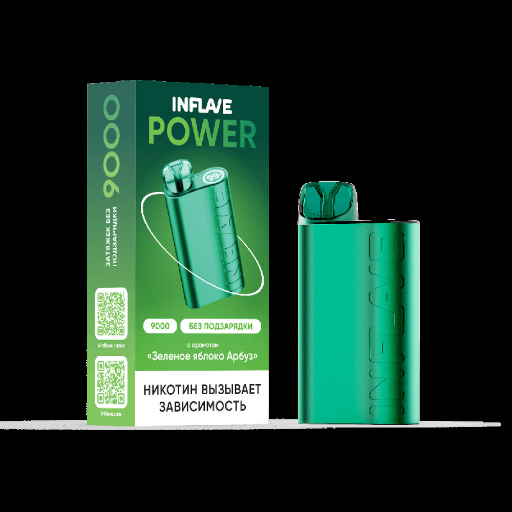 Электронная сигарета INFLAVE POWER 9000 затяжек Зеленое Яблоко Арбуз - купить в Перми